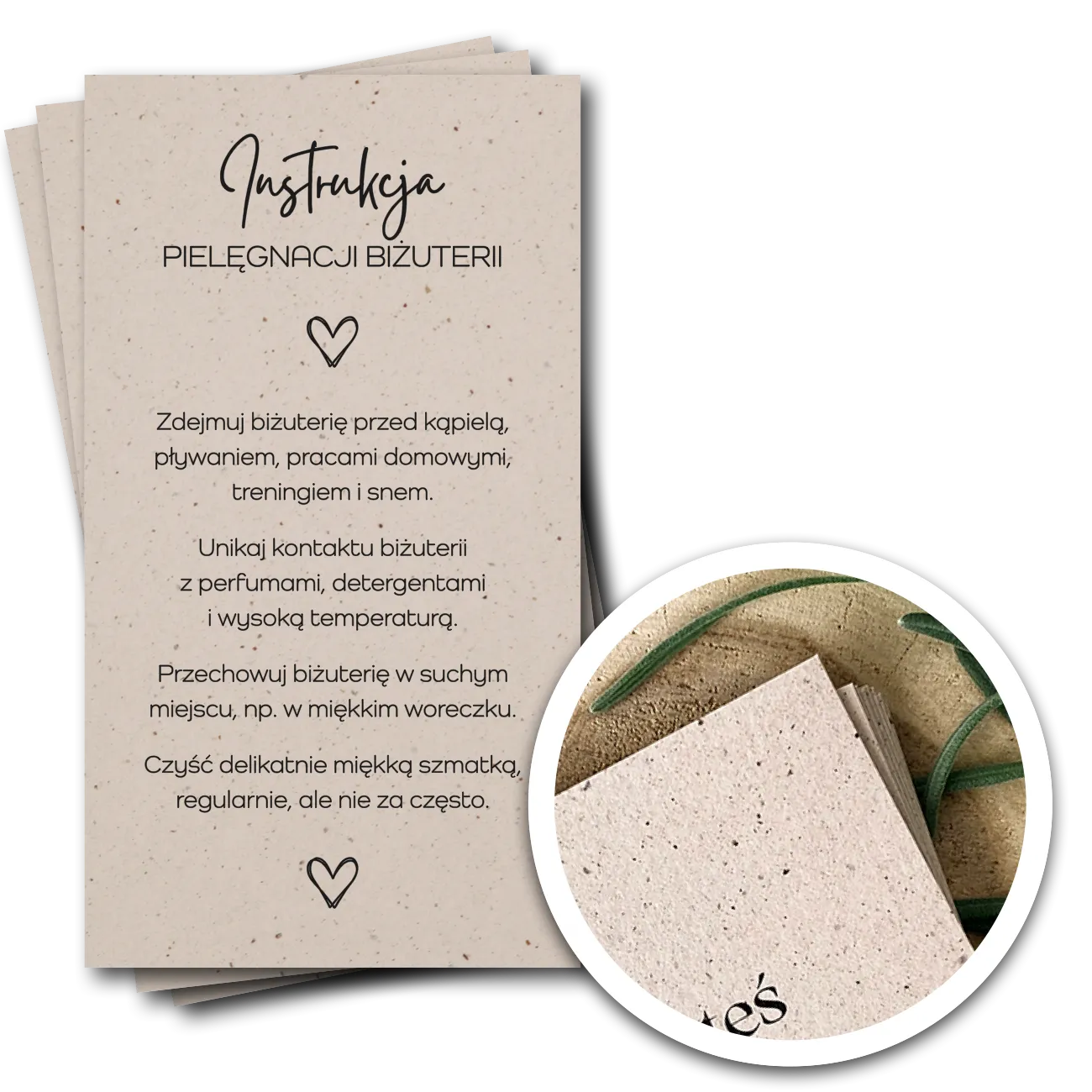 InstrukcjaPielęgnacji Biżuterii dla twórców handmade – 9x5cm, 20 sztuk – Crush Cocoa
